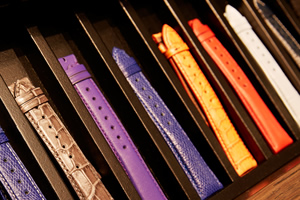 厳選したイタリア産最高級の皮革を使用し、イタリアの職人がひとつひとつ丁寧に仕上げたレザー・ストラップを使用。様々なカラーパターンのある文字盤のデザインに合わせ、ストラップの品揃も定番のブラックからステッチ加工を施したもの、ファブリックなものまでとバリエーション豊富にご用意。高級感のあるダイヤモデルのタイプにはクロコダイル・ストラップを使用し大人のラグジュアリーさを追求しました。