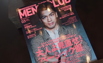 MEN'S CLUB 3月号(1/24発売)で、“大人よ見直せ!ベーシック服”特集の鈴木啓太さんのページで、“Vigoroso”を掲載頂きました!(ありがとうございます!!)