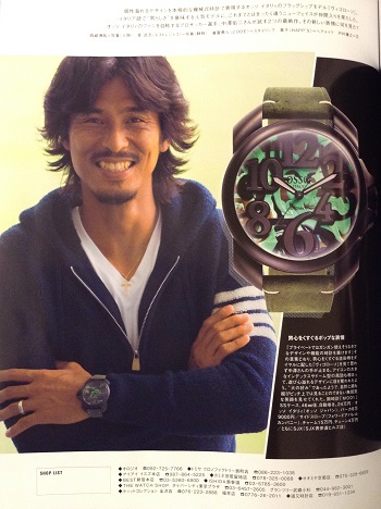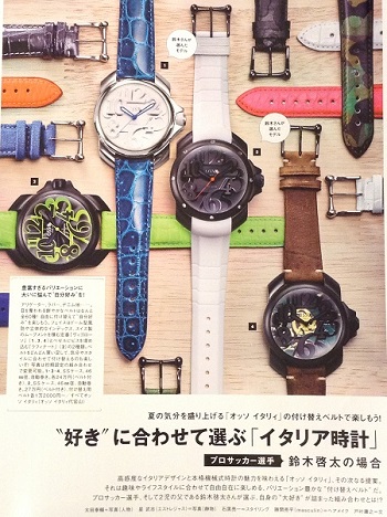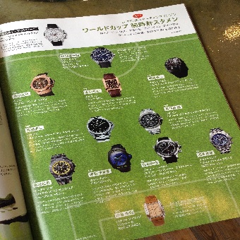 「ワールドカップ腕時計スタメン」と称し、日本代表選手を時計に見立て特集されています。伊野波選手からはOSSO ITALYのVigorosoが紹介されました。