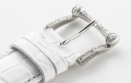 シルバーの尾錠には細部にまでダイヤモンド加工が施されており、またストラップにはクロコダイルを使用し、贅沢さを追求した一品となっている。限られた大人のためだけのラグジュアリーモデル。