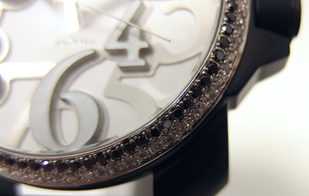 ファッシノとは“男性の魅力、色気、誘惑“を意味する。オールブラックの文字盤にブラックダイヤをあしらったデザインは、男らしさと大人な男性像を連想させる。マッドブラックのケースは落ち着いた雰囲気だけでなくダイヤの華やかさを引き立たせる。腕時計だけでなく男の大人なジュエリーとしても身に着けられる。